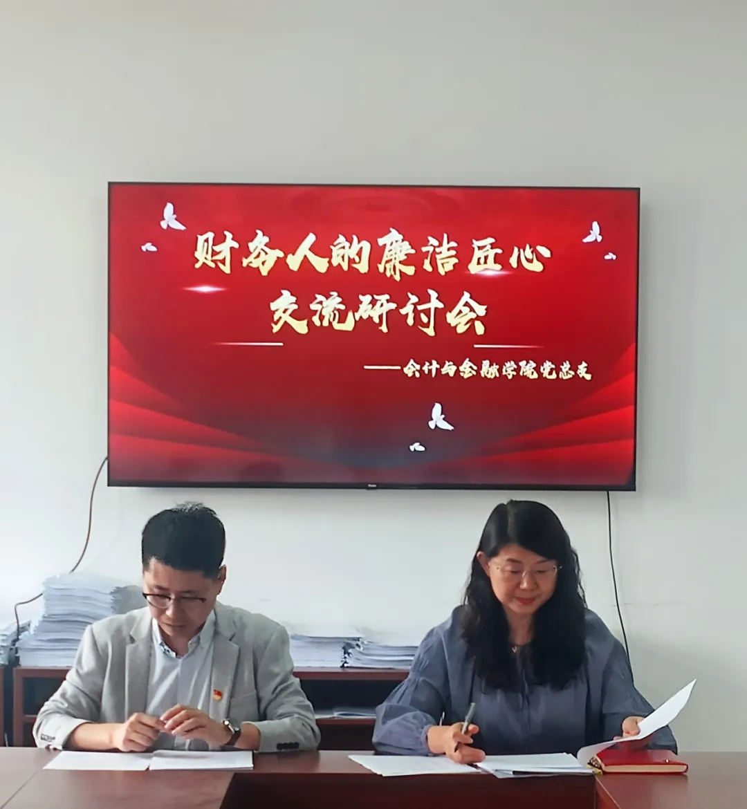 教师党支部书记相福刚谈到,作为财务人员,我们肩负着维护企业财务安全和合规的重任。廉洁从业是我们的职业操守,也是我们的责任担当,作为财务人员,我们要时刻保持廉洁自律,不断提升专业素质,积极履行社会责任,用匠心和担当诠释财务人的价值。