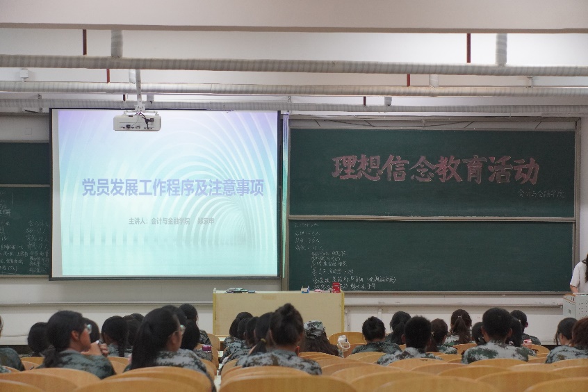 讲座伊始,郑老师向大家讲解了申请入党人员、入党积极分子、发展对象、预备党员、正式党员的概念。接下来,郑家申老师详细说明发展党员的工作流程:申请入党,入党积极分子的确定和培养教育,发展对象的确定和考察,预备党员的接收,预备党员的教育考察和转正。郑家申老师希望大家要有理想,坚定理想信念;要敢担当,扛起青春责任;要能吃苦,经受风雨洗礼;要肯奋斗,嘹亮奋斗号角,用青春的行动践行“请党放心、强国有我”的铮铮誓言。