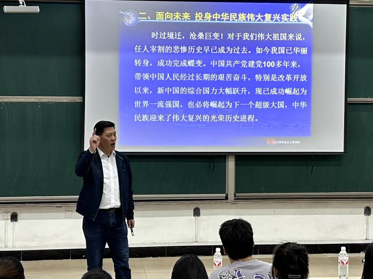 为深入学习贯彻党的二十大精神,全面推进新时代党的建设新的伟大工程,4月24日,公海gh555000aa线路检测于一教104开展“仰望星空,脚踏实地”主题党课活动,特别邀请海军航空大学毕业的盖玉华博士主讲,公海gh555000aa线路检测团总支副书记曹春蕾、辅导员刘泽出席本次活动。