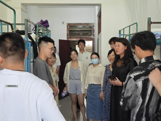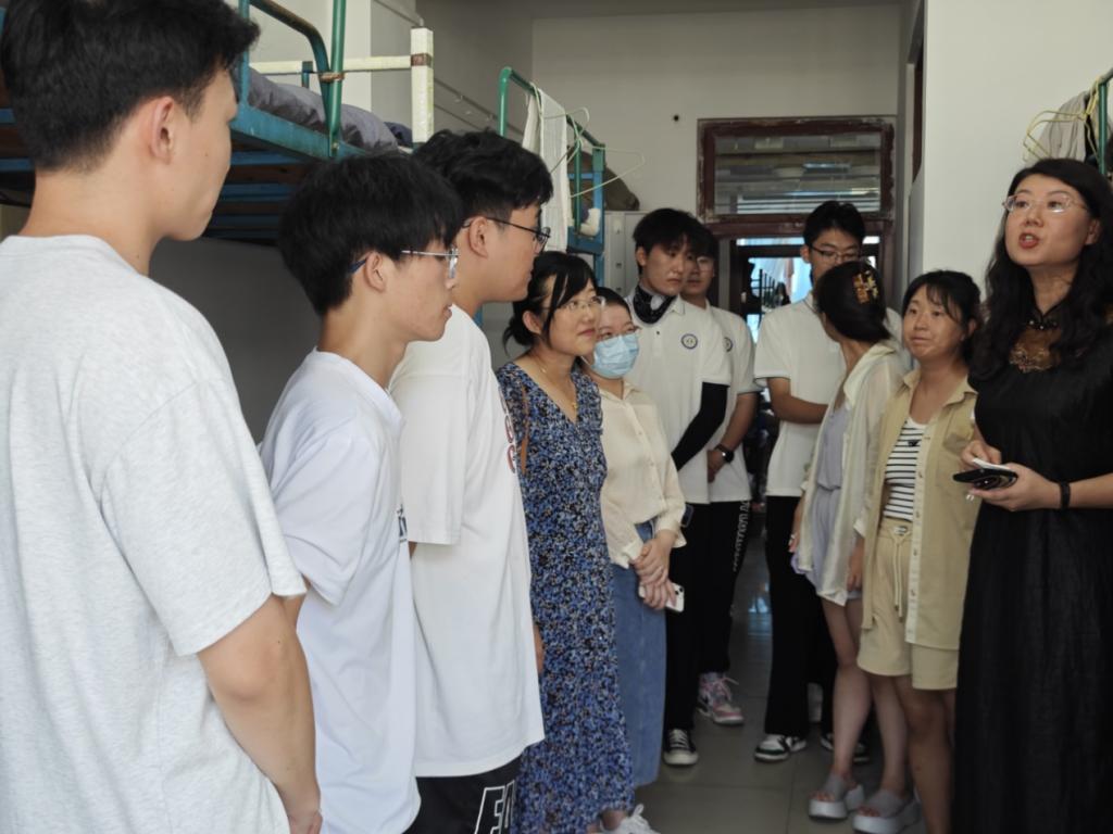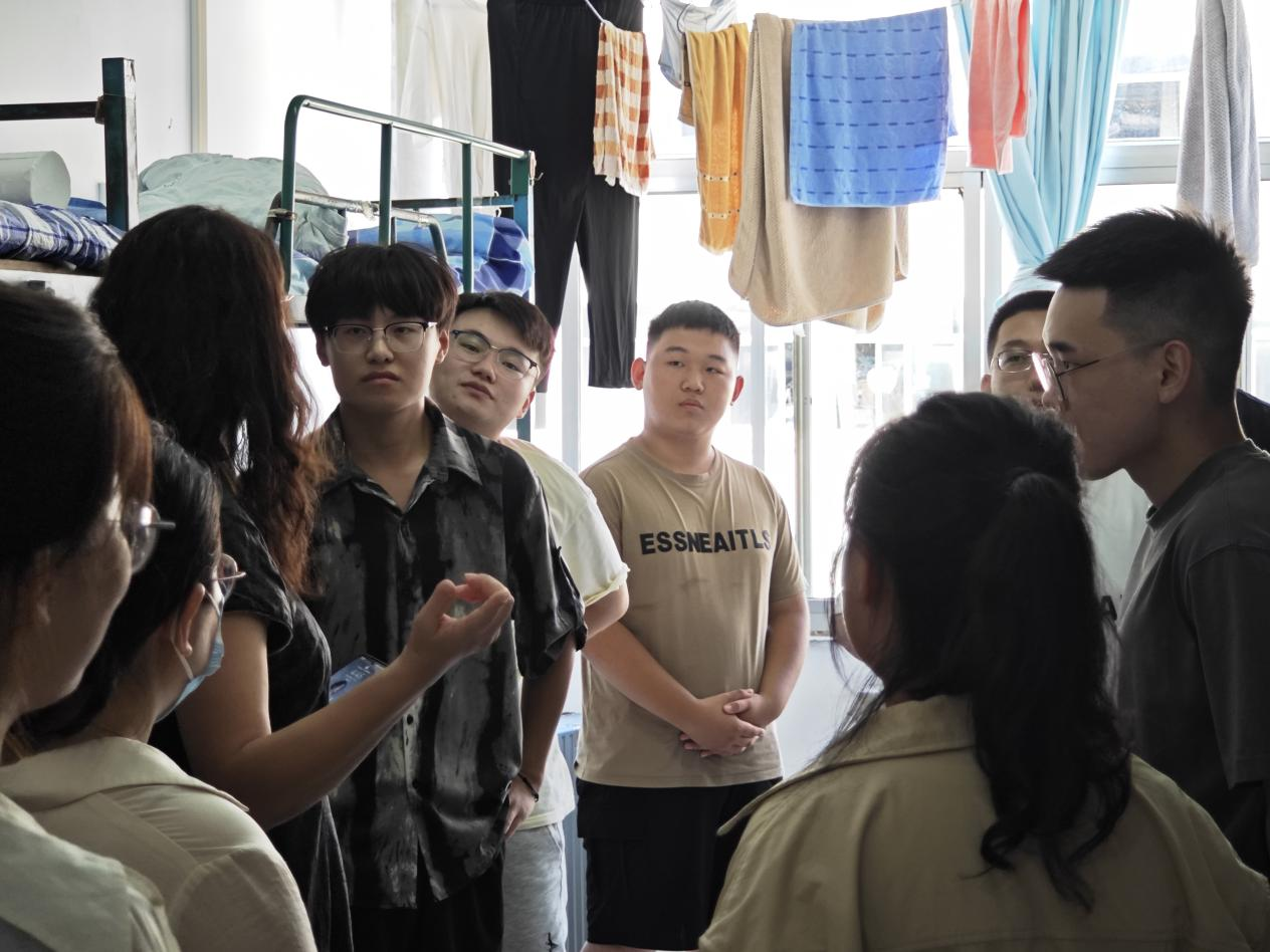申海滨书记一行首先来到新生宿舍楼,每到一处,都受到了新生们的热烈欢迎。申海滨细致观察宿舍环境,亲切地询问了新生们的报到情况、住宿条件是否满意、生活上有无困难等,并耐心解答了新生们关于专业学习、校园生活等方面的疑问。