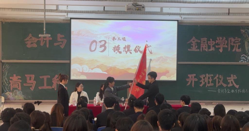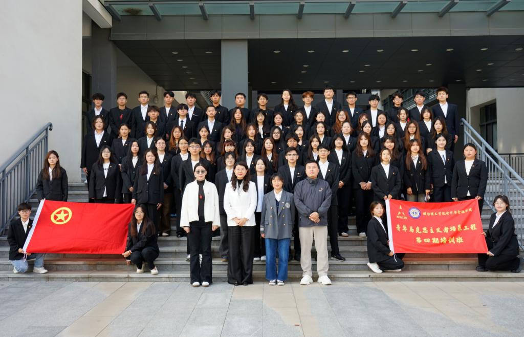 团总支负责人曹春蕾为第四期青马工程培训班授旗