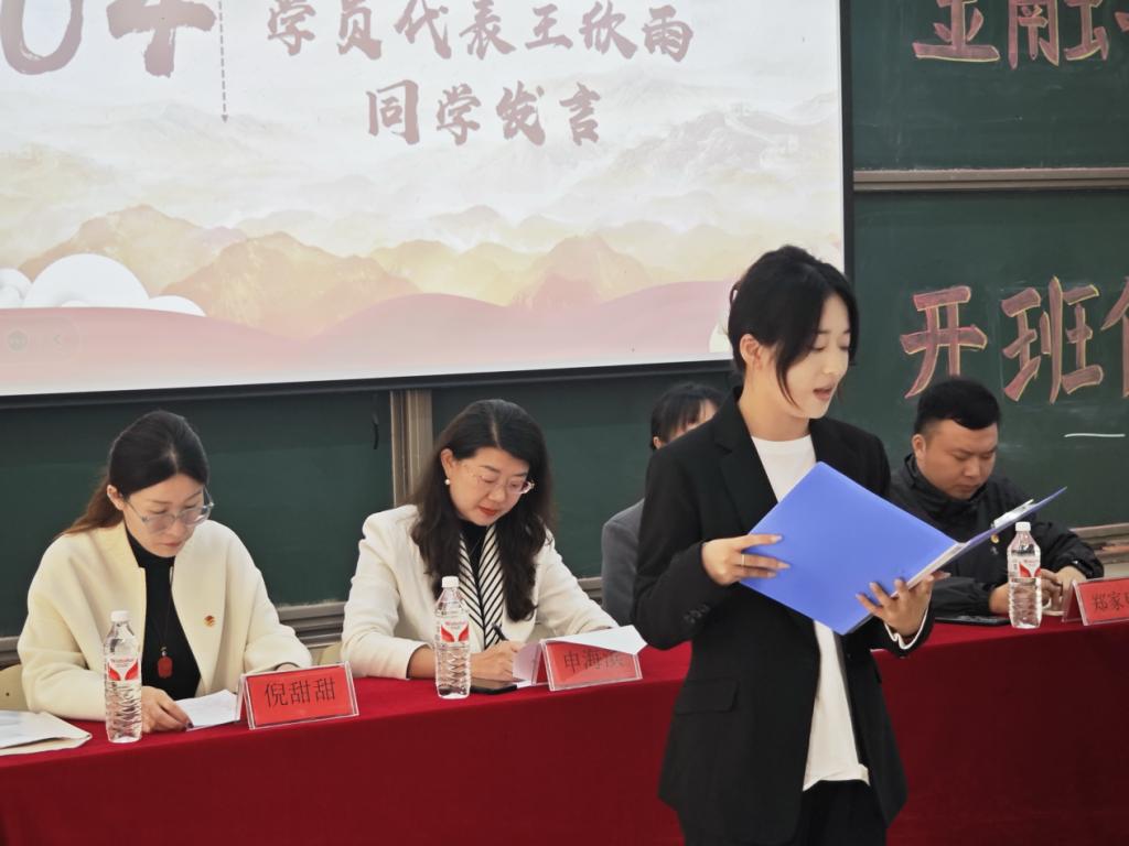 学员代表王欣雨在发言谈到,作为新时代的青年学子,肩负着历史赋予的重大责任,必须深入学习马克思主义,不断提升政治觉悟和理论素养。她表示,“青马工程”是提升思想境界、增强实践能力的宝贵机会,将好好珍惜此次学习机会,积极参与各项学习实践活动的平台,在“青马工程”的平台上书写青春篇章,为实现中华民族伟大复兴的中国梦贡献青春力量!
