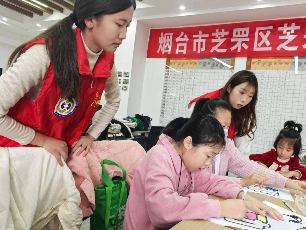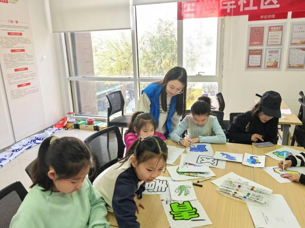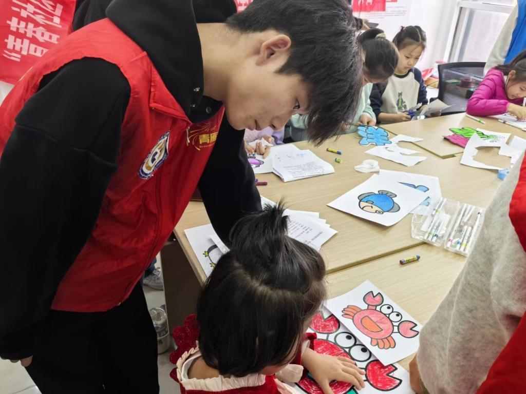 青雁志愿服务队成员陪同青少年们选择海洋生物涂色来作为自己在剧本中的角色,并通过丰富多彩的形式向青少年普及了海洋知识,耐心地为大家讲解海洋生态的构成、海洋生物的多样性以及海洋面临的威胁,同时采取一对一的形式带领青少年熟悉剧本台词、排练,耐心地指导青少年理解剧本内容。