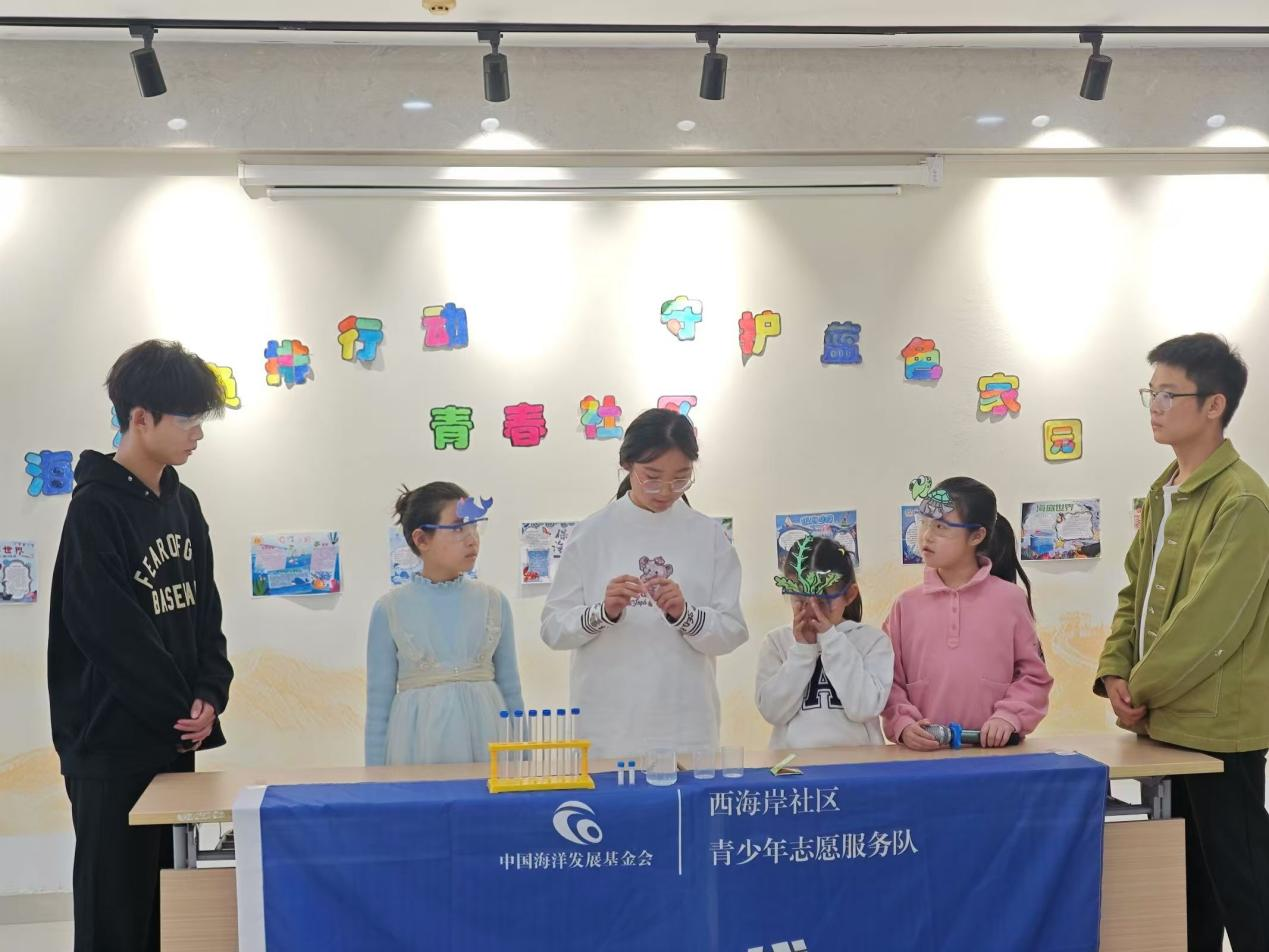 青少年们通过生动的表演,展现了海洋的奇妙生物世界。青雁志愿服务队成员还同青少年们进行了一次海水小实验,促进了青少年海洋环境保护意识的提高。