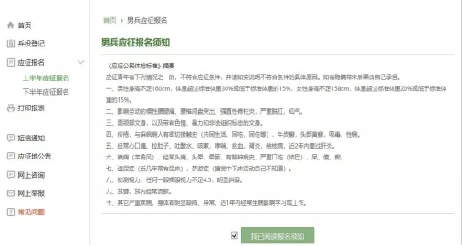 选择报名阶段确定后,会弹出男兵应征报名须知,请仔细阅读对照自身条件是否符合。