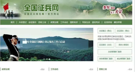 电脑端浏览器搜索“全国征兵网”,点击弹出官网界面如下: