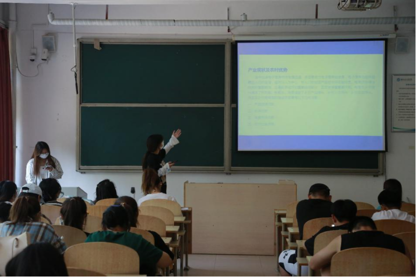 答辩会上各参赛项目队伍成员依次上台发言,结合PPT从创新理念、项目概括、市场分析、项目优势、创新点、后续发展等方面进行项目介绍演讲,之后评委老师们对各项目逐一点评,指出了项目中的亮点与不足,并给出了宝贵建议。