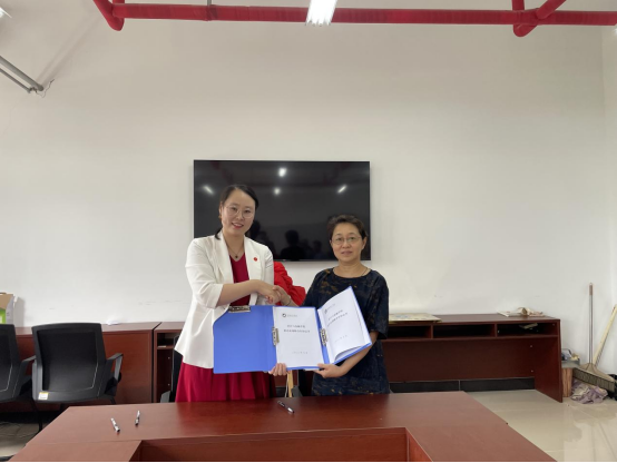 孙经理与新道科技股份有限公司的校企合作经理赵玉凤女士签署了就业实习基地和教学实习基地协议,并进行了揭牌仪式。