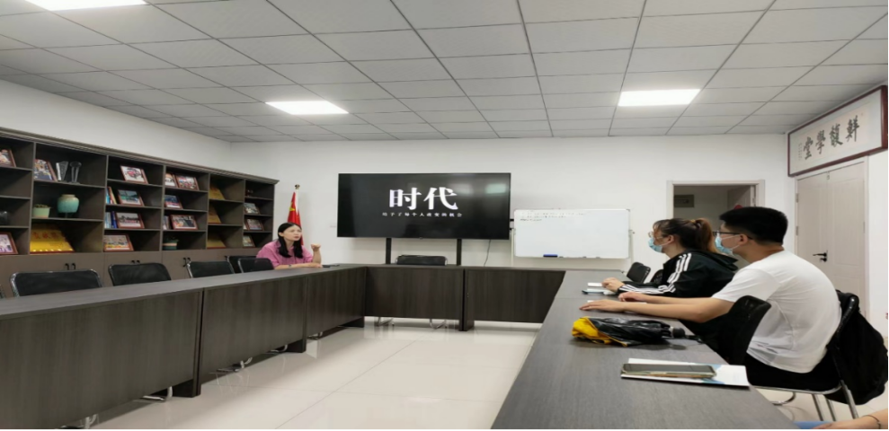 图为启元队队员在文诚控股集团有限公司会议室与负责人正在交谈
