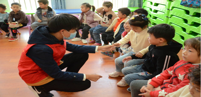 到达栖霞市儿童之家前,田关实践队与工作人员取得联系,分配好各自任务。早晨,田关实践队到达儿童之家,跟随着工作人员与留守儿童见面,用微笑化解孩子们初见陌生人的彷徨与不安。随后,团队成员拿出早已准备好的画画工具、零食和小红花等物品,分成两人、四人一组陪伴孩子们交流与玩耍,一起唱儿歌、吃零食,孩子们纯真活泼,踊跃参与活动。接下来,团队成员带领孩子们进行绘画、剪纸,孩子们用心制作着自己最好的作品。在陪伴中,孩子们展现出童真与求知欲,充满快乐与幸福。田关实践队与他们共享心事,为他们解疑答惑,悉心照顾每一位小孩,让他们感受到温暖,传递着温情!