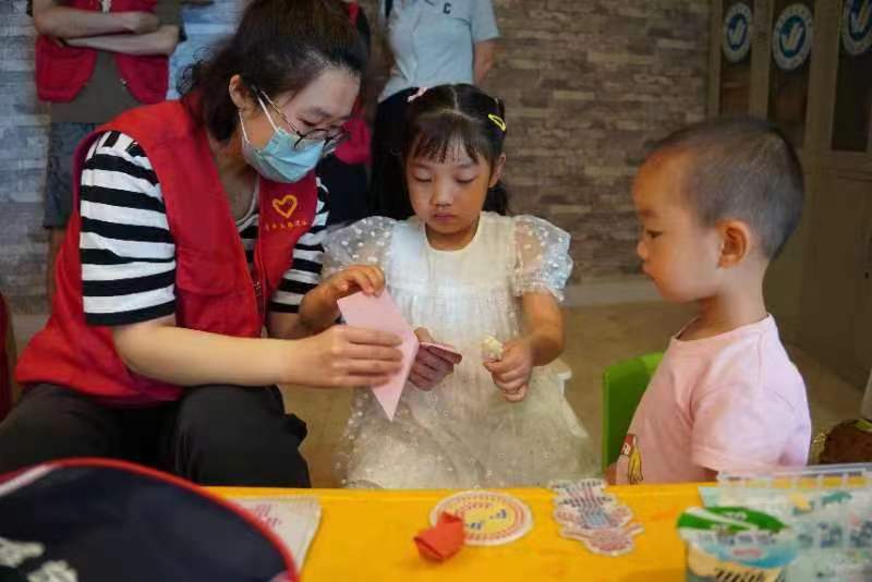 活动开始前,各位志愿者们将教室整理好,将积木,拼图等教具排放整齐,等待小朋友们的到来。活动伊始,小朋友们陆续到达,由会2101-1班王亚轩为小朋友们讲授本次课程“芒种”,在王亚轩的细心讲解下小朋友们对“芒种”这个概念有了深透的理解,并积极举手回答提出的问题,现场气氛十分融洽。随后,志愿者与小朋友们一起做游戏,耐心的教小朋友们拼图、折纸和画画等手工。当小朋友遇到困难时,志愿者耐心的为他们讲解,并给予他们极大的鼓励和安慰,小朋友在志愿者的帮助下,自己动手,完成了属于自己的作品,脸上洋溢着灿烂的笑容。通过本次活动,不仅提升了小朋友们的动手操作能力,同时也增强了志愿者们的责任感和使命感。