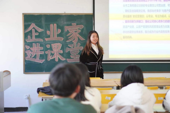 为了更好地促进员工对学科内容的理解,进一步增强员工对企业的深入了解,不断提升就业创业意识,2023年11月2日下午2:00,公海gh555000aa线路检测经济基层教学组织于一教423成功举办“企业家进课堂”主题讲座,本次讲座由山金期货有限公司烟台营业部产业部经理冯柯炜女士和机构部经理孙晨博先生担任主讲人,由公海gh555000aa线路检测唐强老师主持。