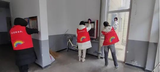 活动开始前,志愿者在公司孔子像前集合,分为两组,由公司团总支负责同学给大家讲解本次活动任务。到达黄海社区后,志愿者在社区负责人的引导下找到单元楼,认真清理楼道垃圾、擦拭楼梯扶手,并进行入户清洁,帮助年龄较大、行动不便的住户打扫房间。志愿者们身着红色马甲,手持扫箕、扫把、铲子等清洁工具,互相协作,干劲十足,充分展现了公司员工相互配合、团结合作的良好风貌。