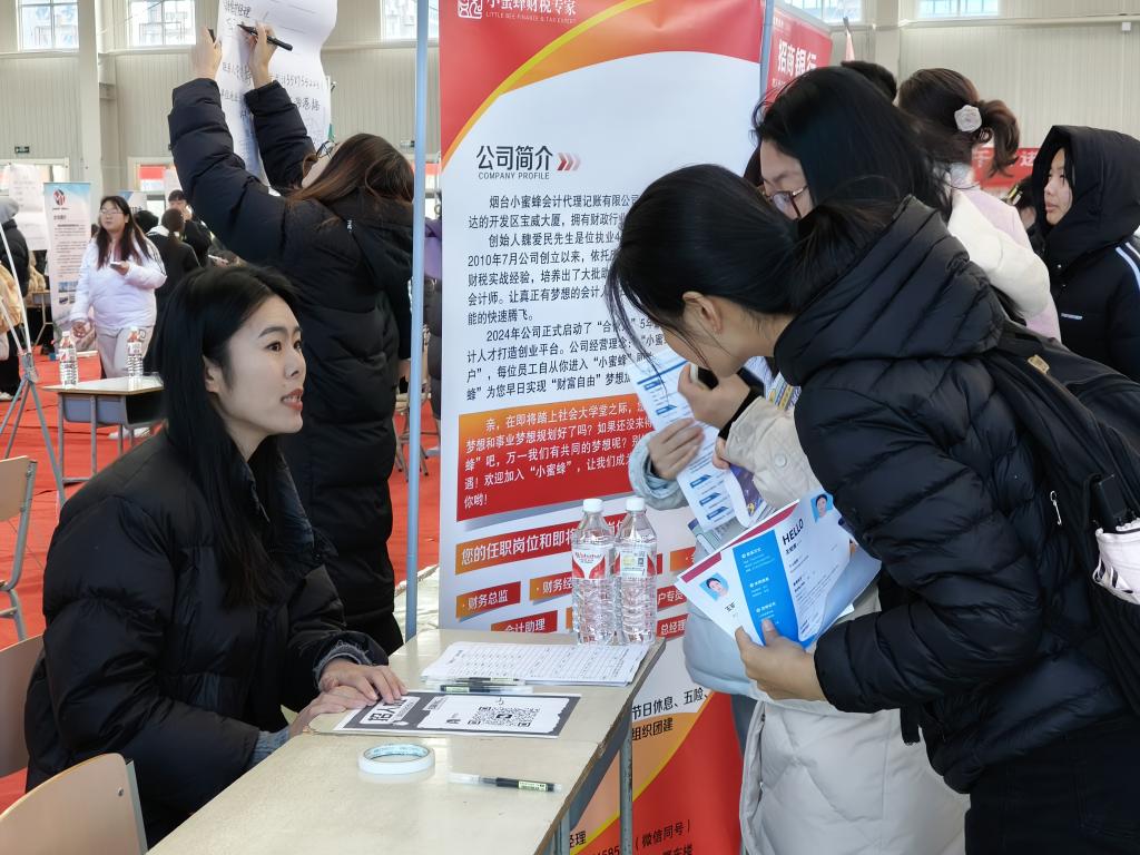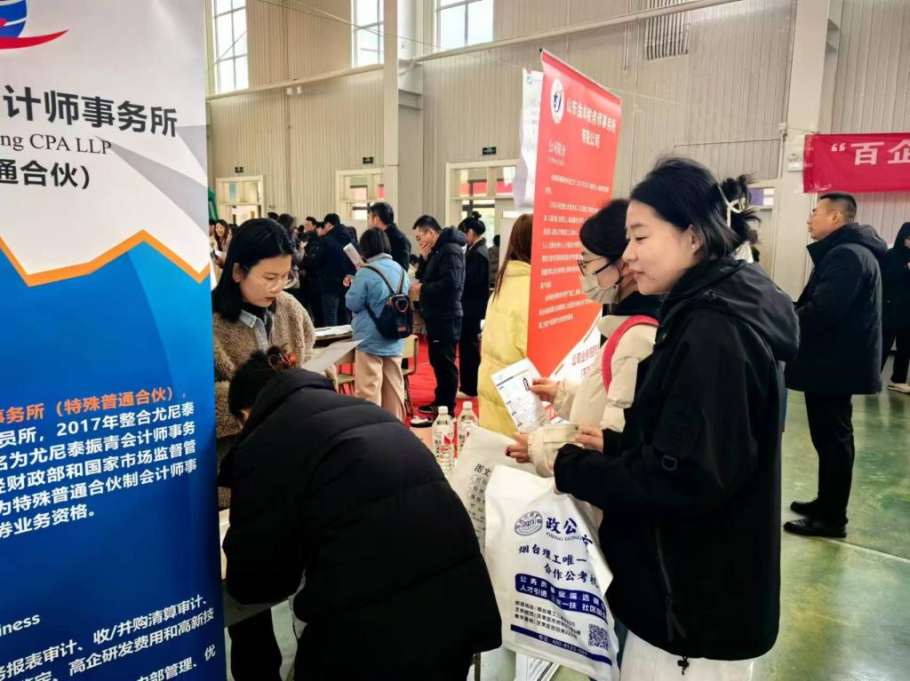 本次招聘会遴选了中金财富、尼泰振青会计师事务所(特殊普通合伙)烟台分所、山东金卓税务师事务所、国信证券、长江证券、招商银行等共43家知名企业,为毕业生精准提供涵盖了财务管理、会计学、市场营销、证券等多个专业领域的408个就业岗位,岗位类型紧扣财会经管专业特色,满足毕业生精准化的求职需求。招聘会吸引了千余人次毕业生参与,收集员工简历900余份。