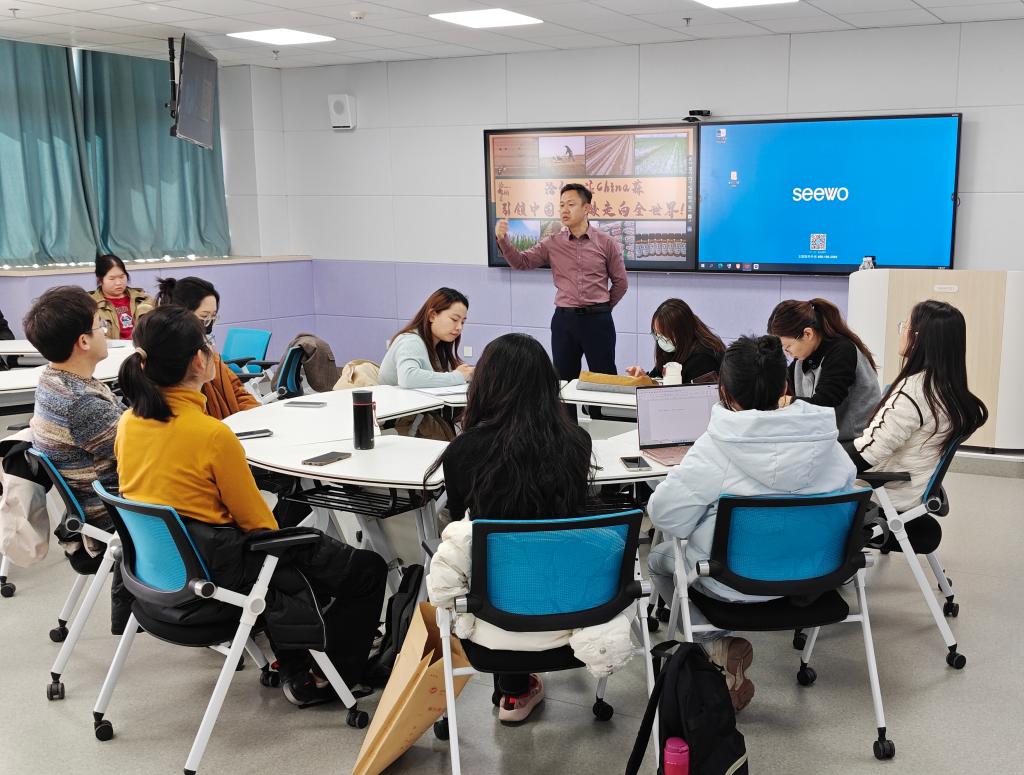 莘海东副经理结合其指导的全国获奖项目展开深度分享。他重点解析了南昌师范公司罗小庆团的“‘一线生鸡’——行业标准制定者 乡村振兴‘鸡’先锋”项目和安徽财贸职业公司“‘蒜’我狠——让大蒜破茧成蝶”项目案例,展现了以创新思维破解行业痛点的巨大潜力,展现农业产业链创新的实践价值,也为同学们提供了宝贵的创业启示。