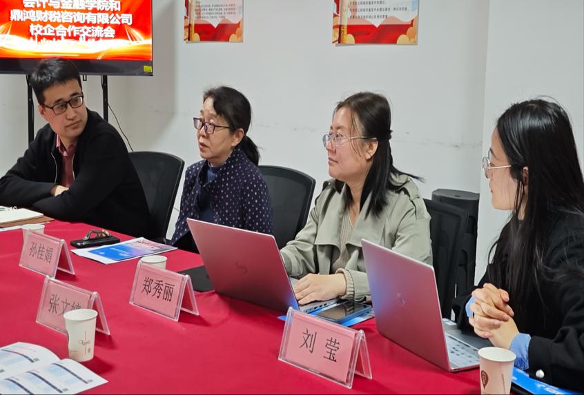 交流会上,经理孙桂娟介绍了公司的发展概况、专业设置及公司产品实验成果,并表示希望通过搭建更多校企合作平台,为员工提供更广阔的实习和就业机会。副经理刘莹详细介绍了公司目前的会计教学实验内容,以便公司更全面地了解公司。