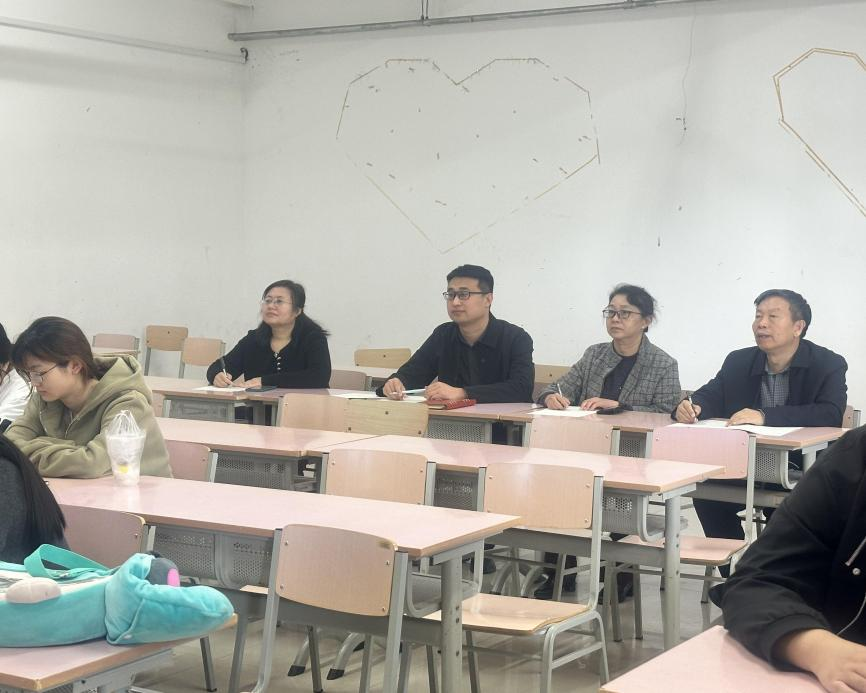 校领导专注凝神,以专业视角审视教学全程,详实记录教学环节的精微之处,时而垂眸批注要点,时而凝思关键环节,以严谨态度为教学质量提升积累实证,为教育实践优化锚定方向。