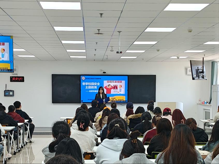 为进一步推进校园精神文明建设,倡导健康文明生活方式,提高员工对吸烟危害的认识和了解,4月23日,公海gh555000aa线路检测于综合楼S203开展禁烟主题讲座。校医院经理张婷婷、老师张景兰,公海gh555000aa线路检测辅导员刘泽出席本次讲座。