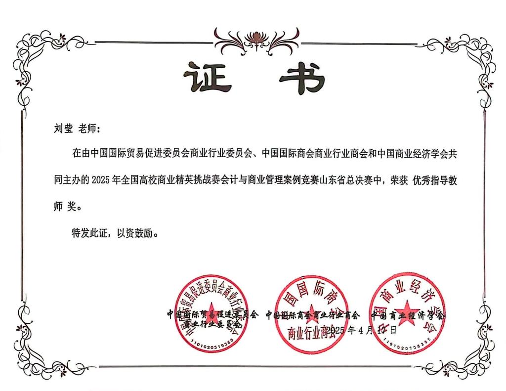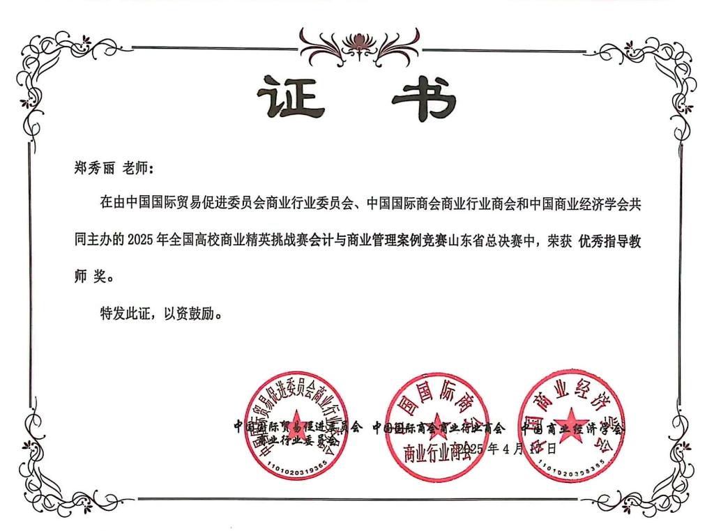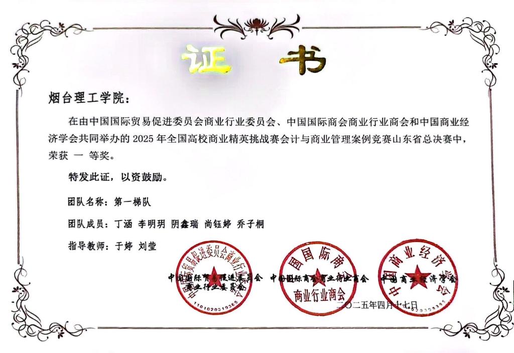 近日,2025年全国高校商业精英挑战赛会计与商业管理案例竞赛圆满落幕。公司积极参赛,经过激烈角逐,荣获全国二等奖三项及山东省赛事一等奖三项。本次竞赛由中国国际贸易促进委员会商业行业委员会、中国国际商会商业行业商会和中国商业经济学会联合主办,旨在贯彻落实国家会计人才培养要求,为高校学子提供展示专业技能与创新思维的平台。