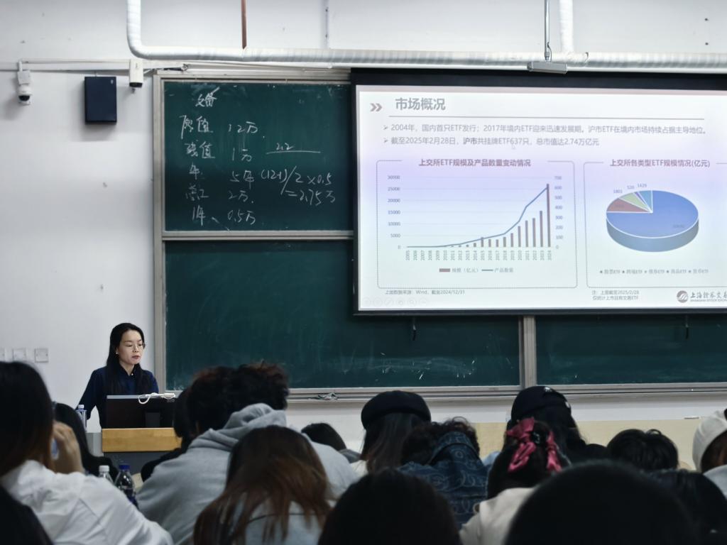 赵彩虹围绕证券投资,结合上交所资料,聚焦ETF市场,讲解ETF交易型、开放式、分散化投资特点,介绍全球ETF市场快速发展趋势,包括规模、增长率及产品类别分布,还剖析了宽基指数、行业主题指数等被动型ETF跟踪标的,让同学们了解指数投资与个股投资差异。同时,也提及开学季防骗要点,警示同学们警惕非法校园贷、网贷,勿租借银行账户,守护金融安全。