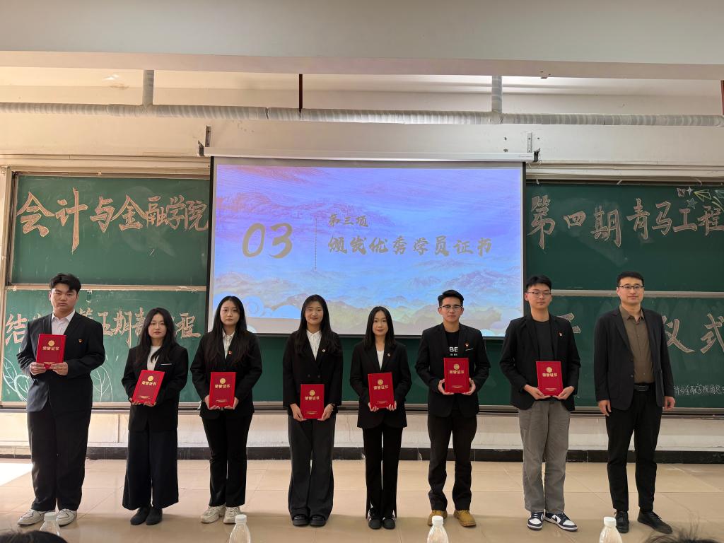 团总支副书记曹春蕾为第四期青马工程学员颁发结业证书。