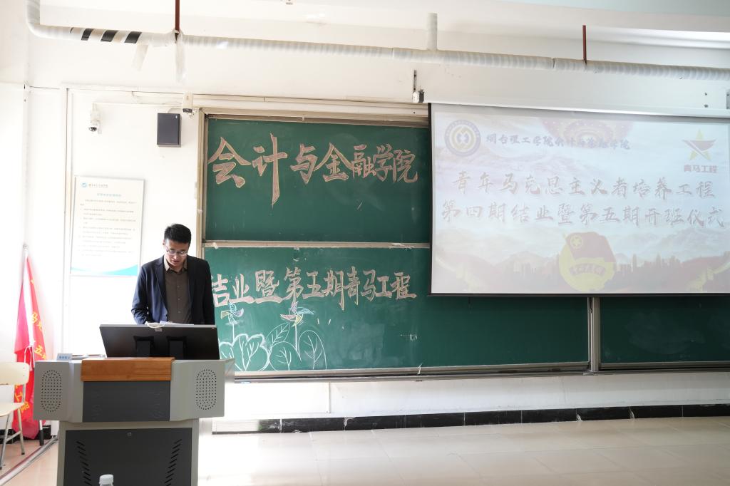 团总支副书记曹春蕾为第五期青马工程骨干班授旗。