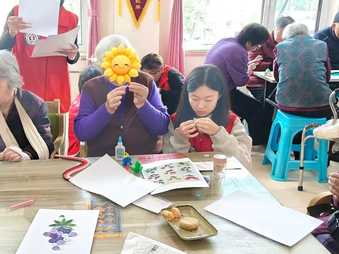 活动现场,志愿者们用提前准备好的衍纸条、卷笔、胶水等材料,耐心细致地向老人们讲解衍纸手工的基本技巧,从如何卷制基础的纸卷,到如何将不同形状的纸卷组合成花朵、树叶等图案。在志愿者的悉心指导下,一张张普通的纸条在老人们的手中逐渐变成了一朵朵精致的衍纸花。