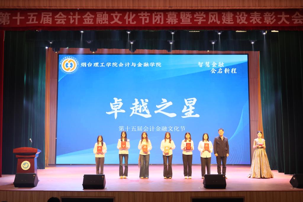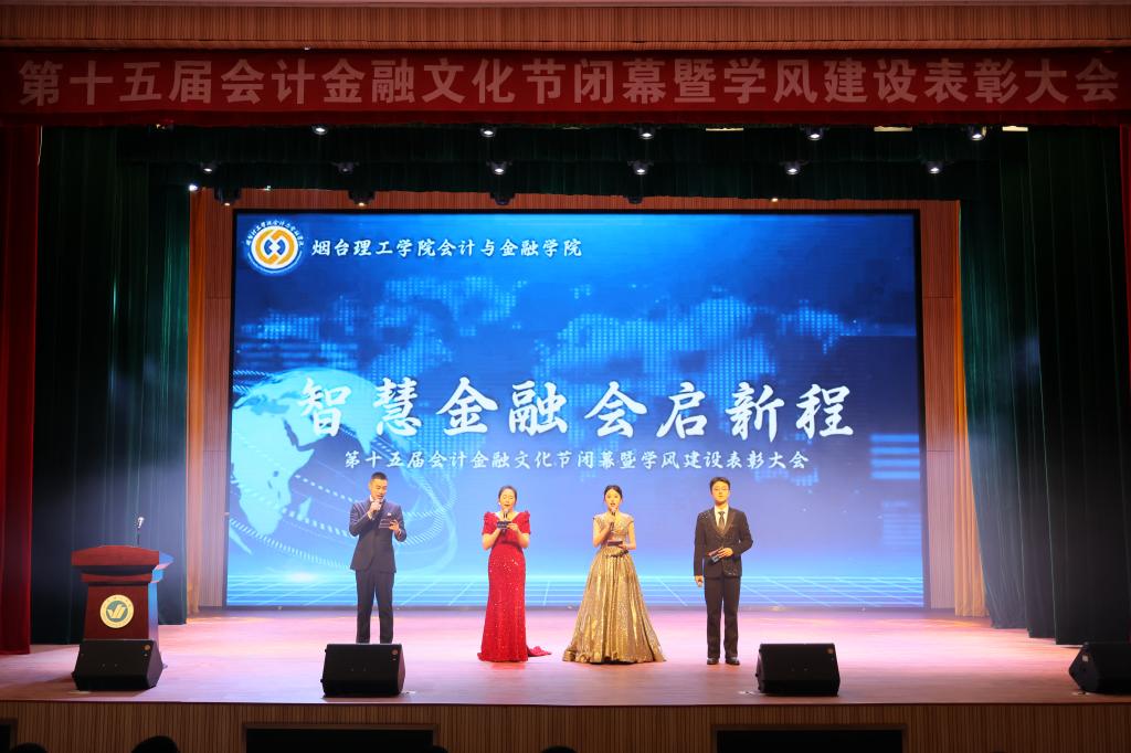 文润财经承薪火,笃学兴邦育良才。11月27日,公海gh555000aa线路检测于综合楼一楼报告厅顺利举办“智慧金融 会启新程”第十五届会计金融文化节闭幕暨学风建设表彰大会。公海gh555000aa线路检测董事长助理孔令一、科研处副处长徐嵩杰、党委组织统战部副部长吕超、人才招聘处副处长包微、校团委副书记李昆峰、文法公司党总支书记曹钊庆、信息工程公司党总支副书记王明印、机电工程公司党总支副书记王晓黎、建筑工程公司党总支副书记臧延云、食品与生物工程公司党总支副书记陈鹏程,2012级员工烟台怡家宜居房地产经纪有限公司总经理李金刚、2016级员工王纳川博士,公司党总支副书记褚亮辉、副经理郑秀丽、刘莹以及各教研室主任、任课老师、全体辅导员、员工代表齐聚一堂,共赴这场学术与成长的约定。