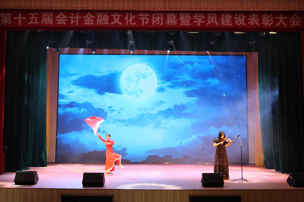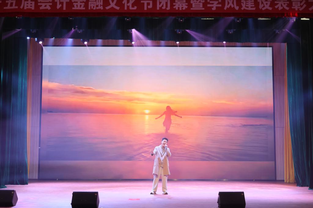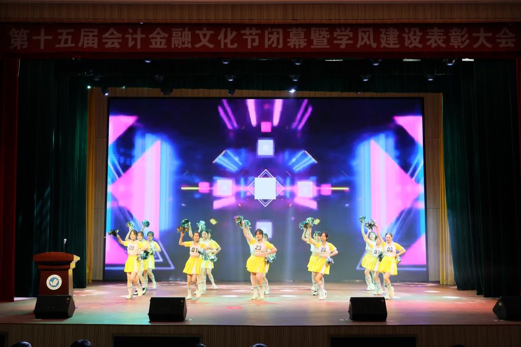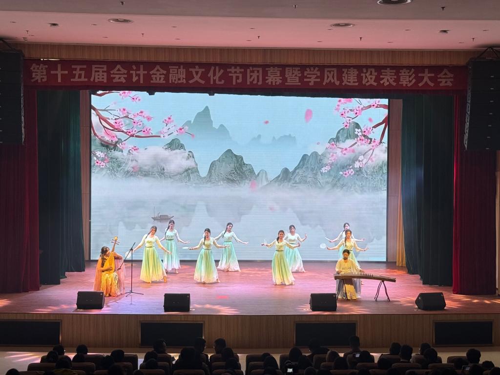 一曲轻唱裹着“课堂抬眸的光、赛场攥拳的烫”,会计技能的指尖温度、金融推演的专注,都揉进专业的认真与热爱里,轻柔旋律引掌声轻漾。灯光骤亮,舞蹈融嘻哈的利落与爵士的舒展,走位起落如热血博弈,青春朝气漫开全场。而后旋律转磅礴,铿锵歌声载千年文明厚重,民族自豪与文化自信直撞人心。歌曲里有同窗支撑的暖、赛场突破的倔,“以诚信为帆、专业为桨”的心声渐响,文化节的闪、课堂的耕、赛场的搏,终熔成青春与担当的滚烫共鸣。