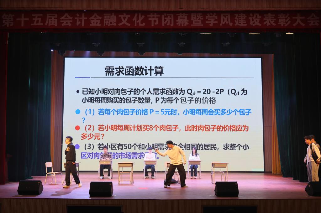 以“账本”为巧妙切口,小品细数大学时光的点滴积累——知识的沉淀、友情的温暖、成长的足迹,用真挚语言勾勒青春里的珍贵回忆与别样感悟。作品以幽默演绎还原校园趣事:有人为钻研金融模型熬夜忘归,险些错过早八专业课;有人沉迷会计分录练习,竟把“上课提醒”当成“竞赛倒计时”。一句“专业课是专业根基,可不能像漏记分录一样马虎”,既戳中笑点又道破求学真谛,全场笑声与掌声交织,引发在场学子强烈的身份共鸣与情感认同,让每段奋斗日常都成为青春账本里最鲜活的注脚。